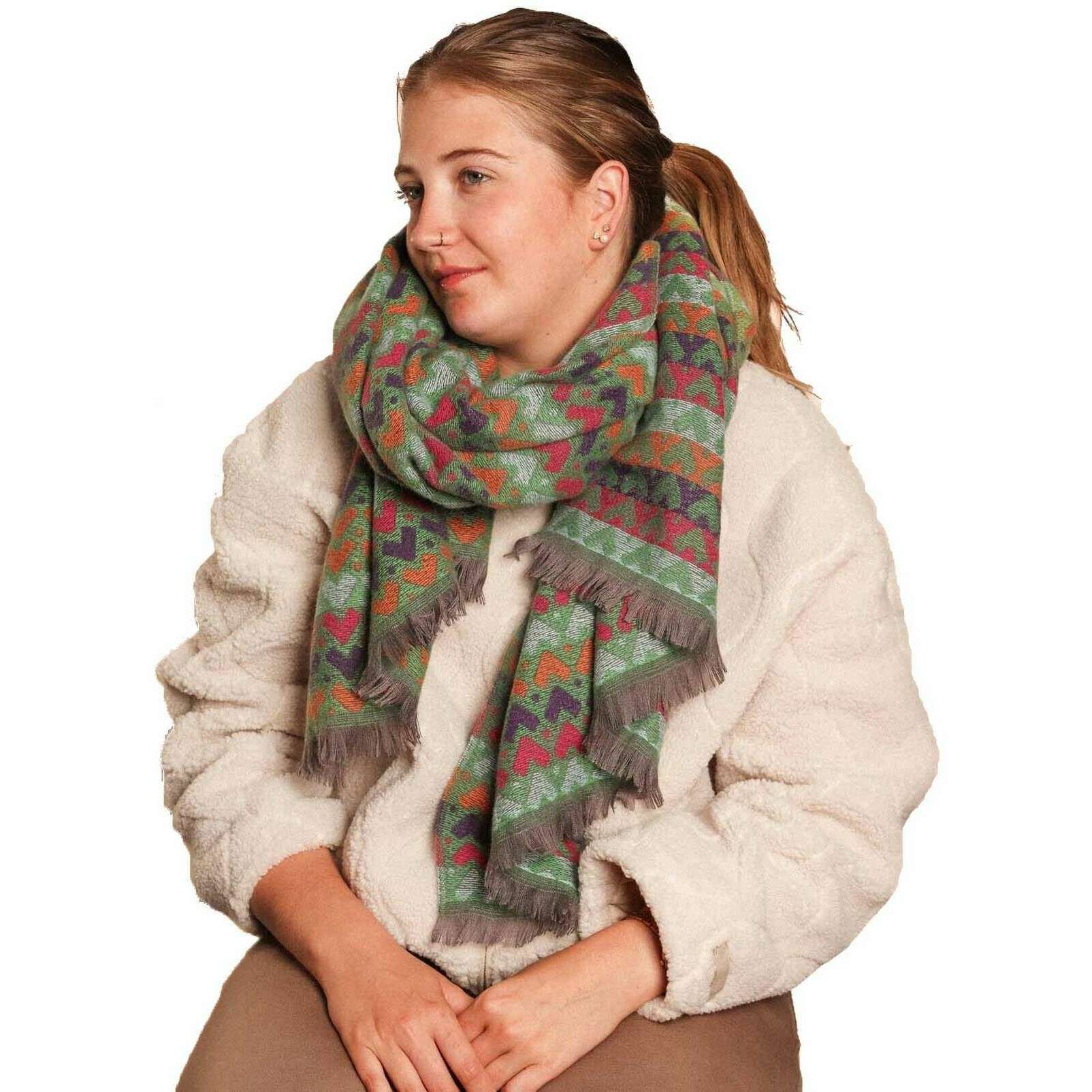 Zelly Hearts Vintervægt tørklæde - Grøn