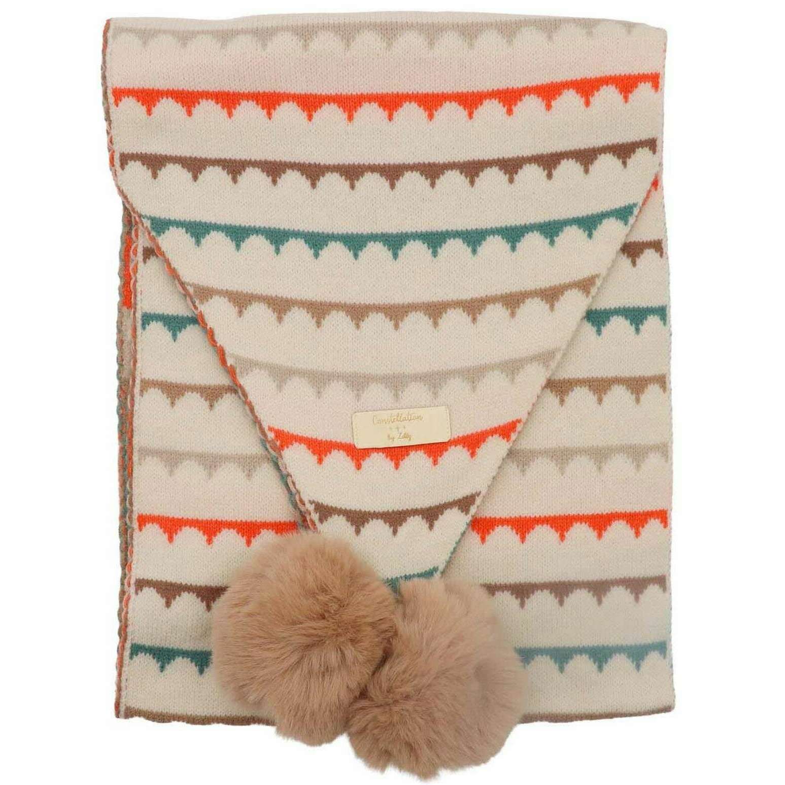 Zelly Waves Pom Pom tørklæde - Creme/Orange/Grøn